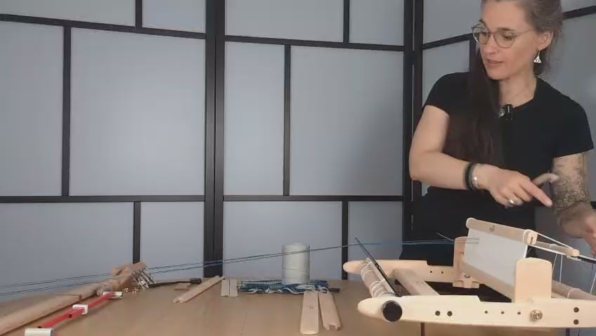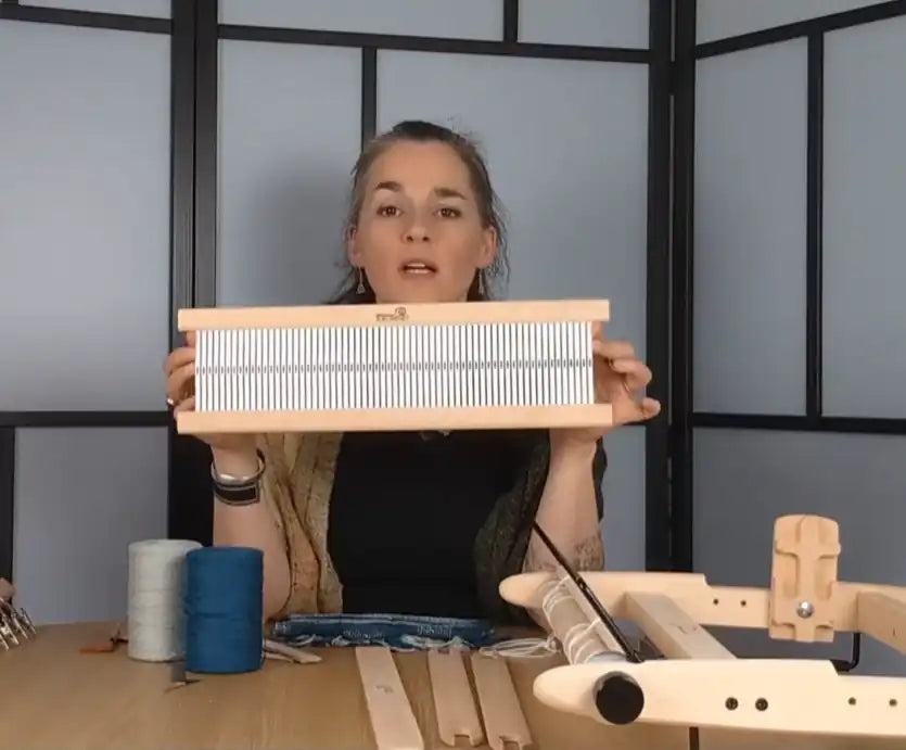 Der Kurs ist ausgelegt auf Gatterkamm-Webrahmen. Besonders gut geeignet sind Modelle wie der Kromski Presto 40cm, Lojan Flex Rigid Heddle 50 cm, Glimåkra Emilia Webrahmen 50cm oder ähnliche Rahmen mit einfachem Gatterkamm-System. Wichtig ist, dass dein Rahmen stabil ist und du inem passenden Kamm (z. B. 30/10, 32/10 oder 40/10) hast.