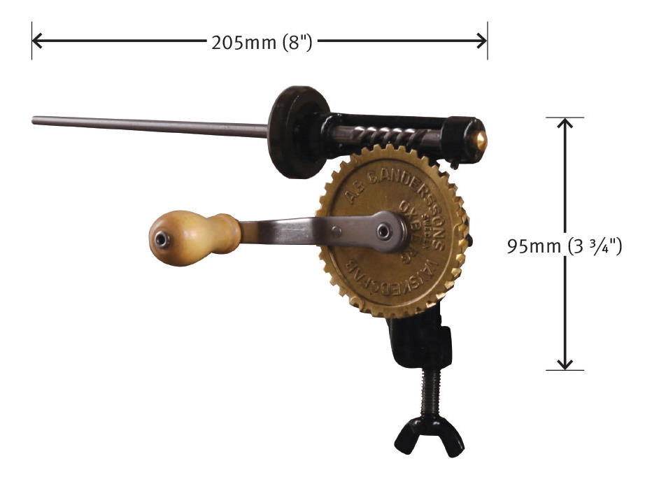 Der langlebige, aus Metall gefertigte schwedische Spulenwickler (auch Knäuelwickler, Spulrad oder auf Englisch bobbin winder genannt) von Glimakra ist ein unverzichtbares Werkzeug für jedes professionelle Weberstudio. Seine leisen, präzisen Zahnräder sind auf lange Lebensdauer ausgelegt und benötigen nur gelegentliches Ölen.