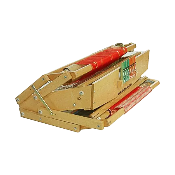 Kann ich den Webstuhl zusammenklappen, auch wenn die Kette eingezogen ist? Ja, das clevere Klappdesign erlaubt Transport oder Lagerung mit eingespannter Kette.