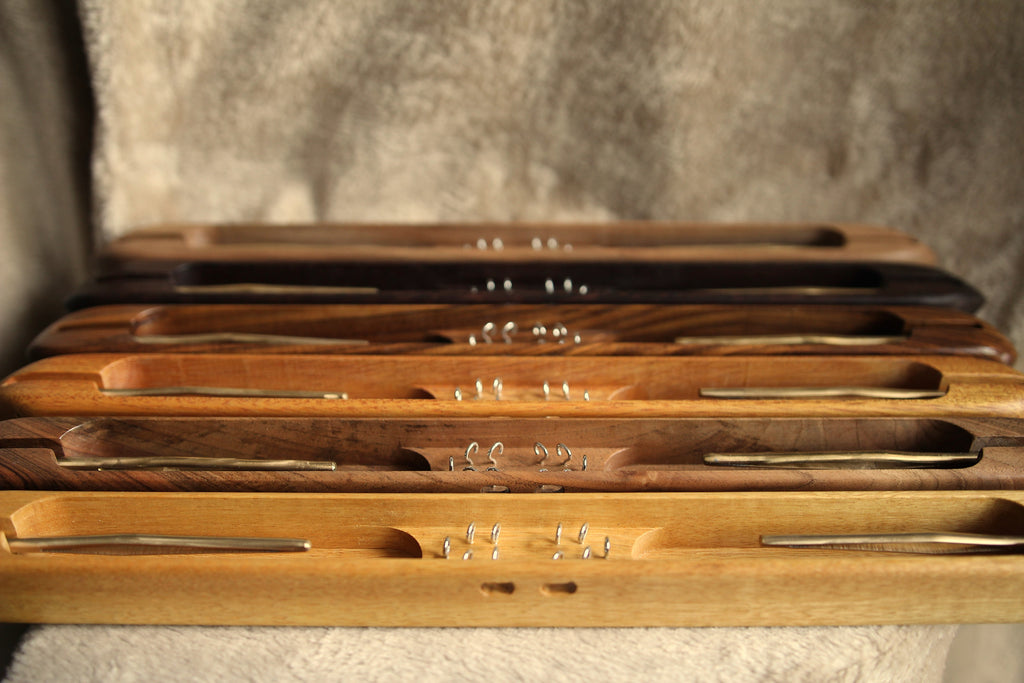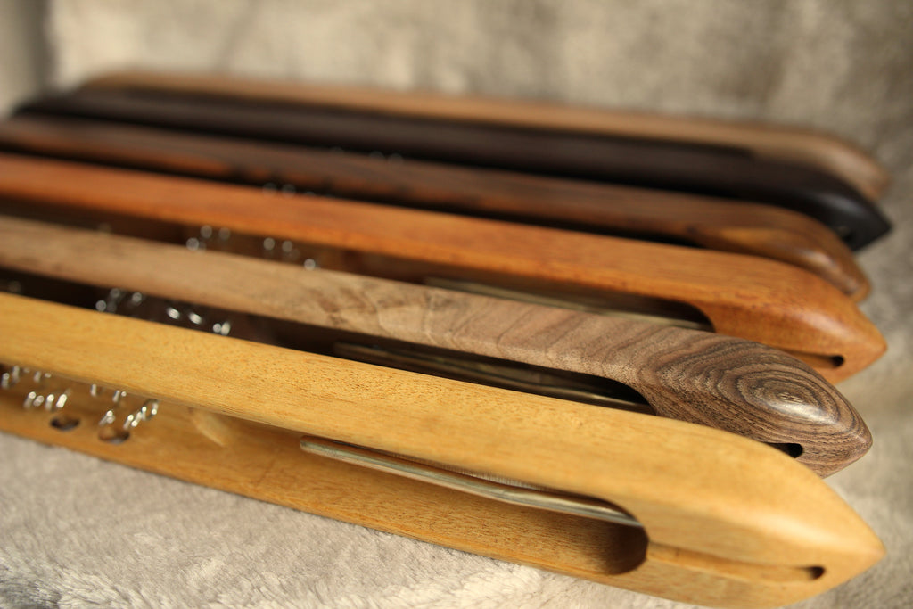 Dieses handgefertigte Doppelschiffchen bringt eine völlig neue Lösung für das Weben mit zwei Fäden gleichzeitig. Durch das integrierte Hakenspannsystem wird auf beiden Seiten eine gleichmäßige und individuell einstellbare Fadenspannung ermöglicht - so kontrolliert und präzise wie nie zuvor.