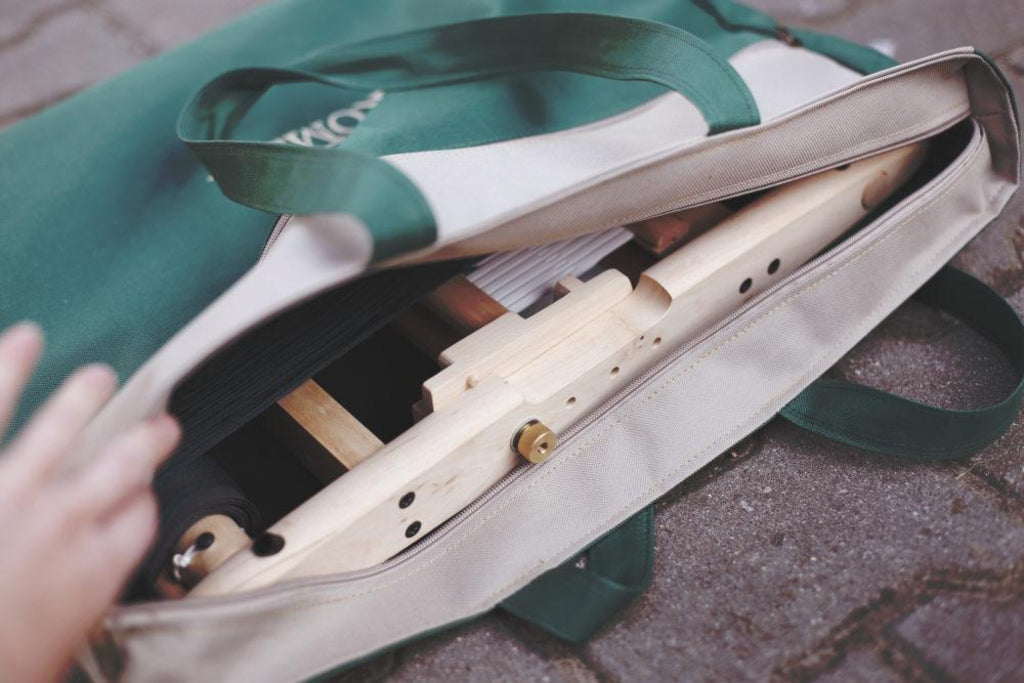 Mit dieser praktischen Tragetasche lässt sich der Presto-Webrahmen ganz einfach zusammengeklappt transportieren oder sicher aufbewahren. Durch das durchdachte Design, zusätzliche Fächer und kompakte Maße ist die Tasche ein idealer Begleiter für unterwegs – ob für Reisen, Workshops oder zum (Feuchtigkeits-)Schutz daheim.